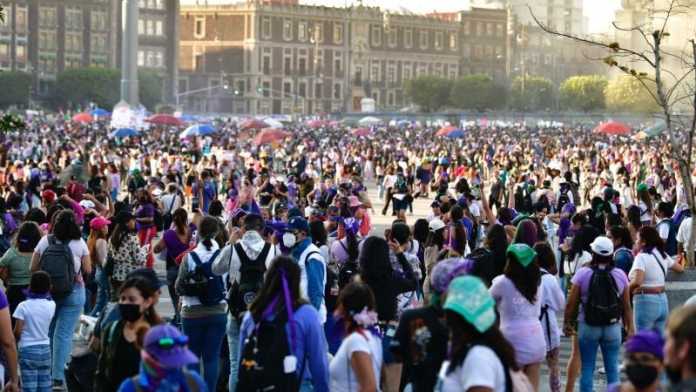Las historias se cuentan en la conmemoración del Día Internacional de la Mujer, en la que cientos de mujeres llegan al Zócalo de la capital, que mantiene amurallados edificios como la catedral metropolitana y el Palacio Nacional.