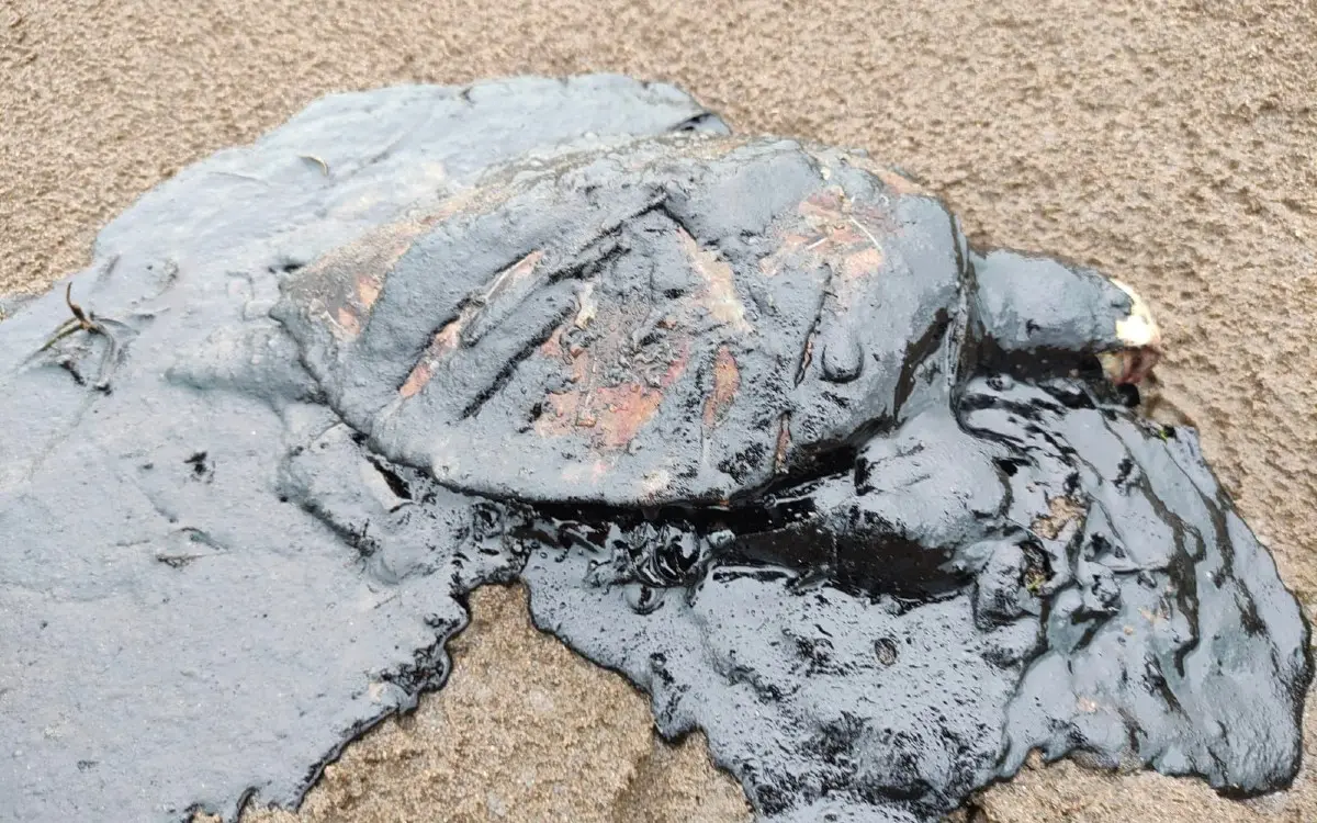 Se reportó el hallazgo de una tortuga muerta cubierta del producto químico y de otros animales marinos fallecidos a a causa de la contaminación provocada por la presencia de petróleo en el agua.