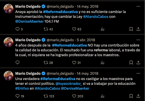 Las posturas públicas de Mario Delgado han quedado asentadas en sus redes sociales.