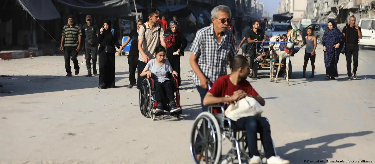 Los residentes de Ciudad de Gaza recurrieron a carros, bicicletas, carretas o sillas de ruedas para huir hasta su próximo lugar de refugio, después de que el Ejército de Israel, fuertemente desplegado en la localidad, pidió el lunes (08.07.2024) la evacuación de nuevos distritos.